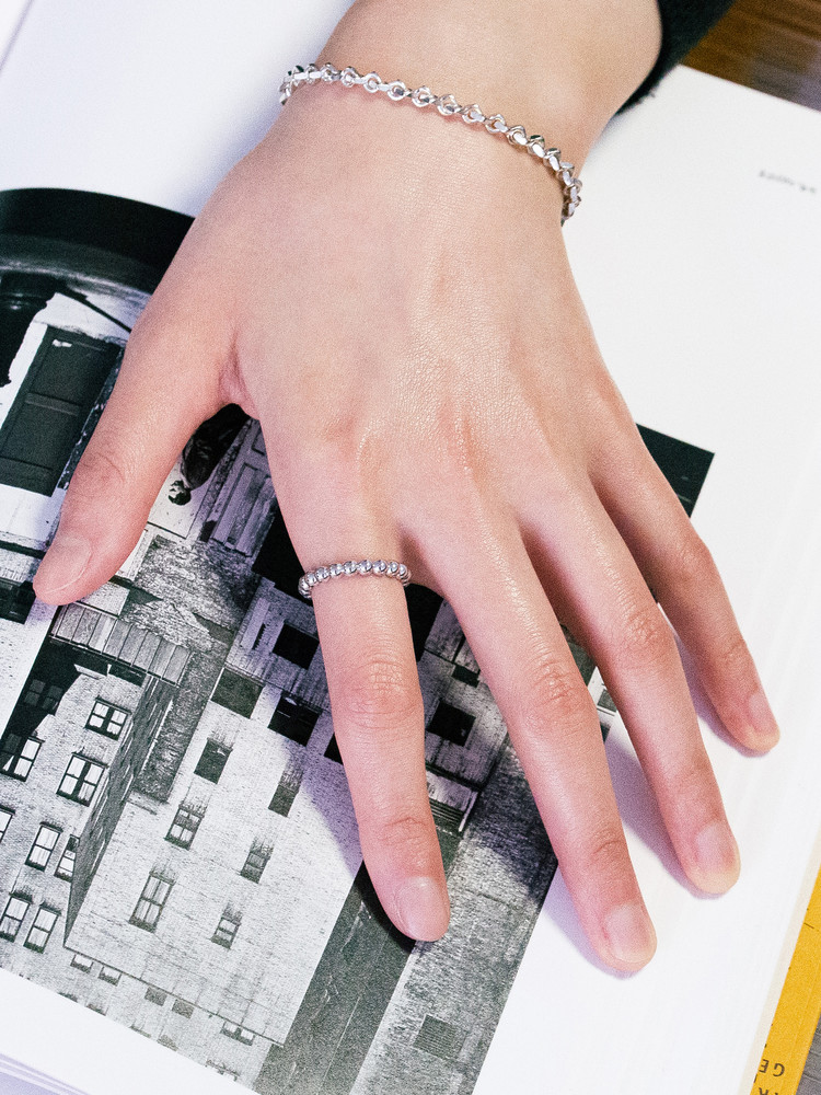 . 도금 없음 : 표면을 도금하지 않은 은 소재 그대로의 high-polishing 마감입니다. 금속은 도금하지 않고 세공한 그대로의 광택이 가장 은은하고 아름답습니다. 다만 화이트 마감하지 않은 925 은 소재의 제품은 상대적으로 변색에 취약하며, 사용자의 관리가 요구될 수 있습니다.