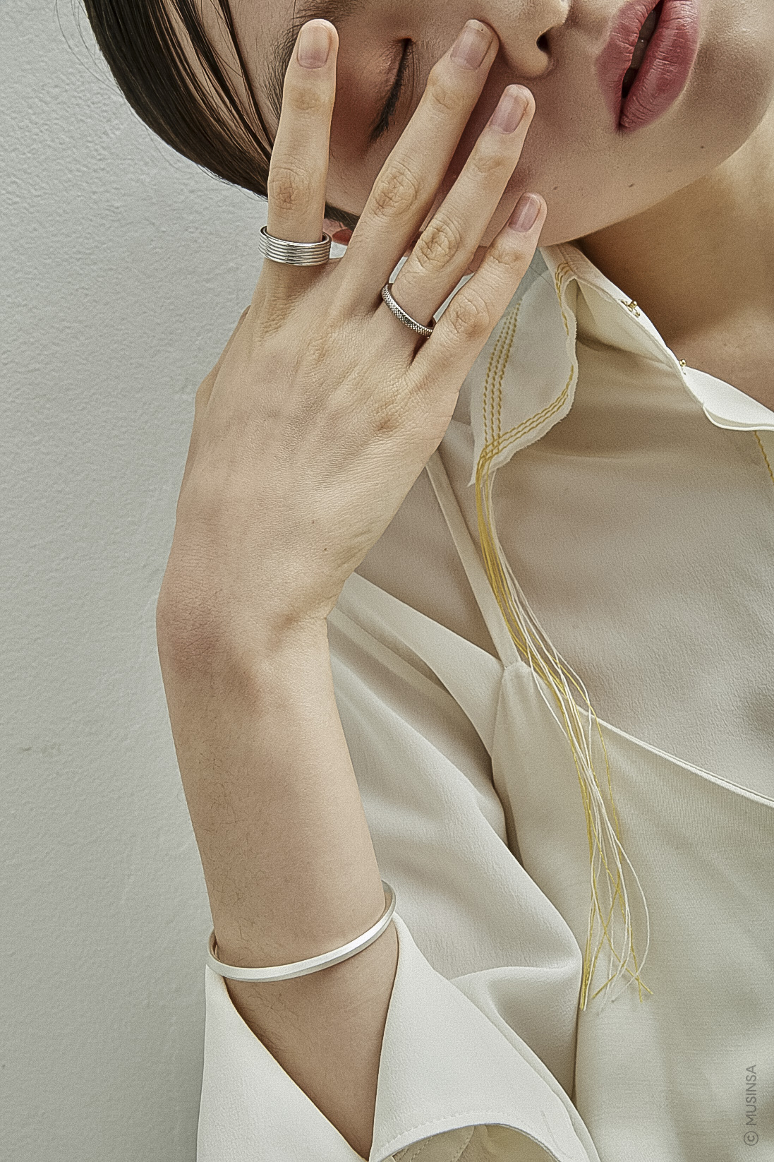 - 이와 대비하여 Yellow-gold 도금의 경우, 마찰과 마모가 생기면 내부의 은 소재 컬러가 드러나며 이질감이 있을 수 있습니다.