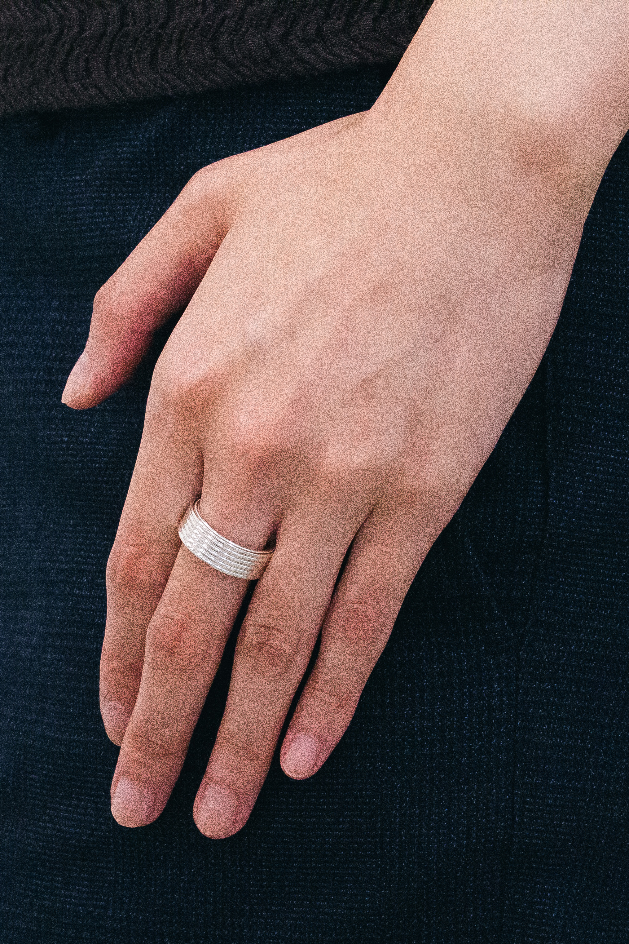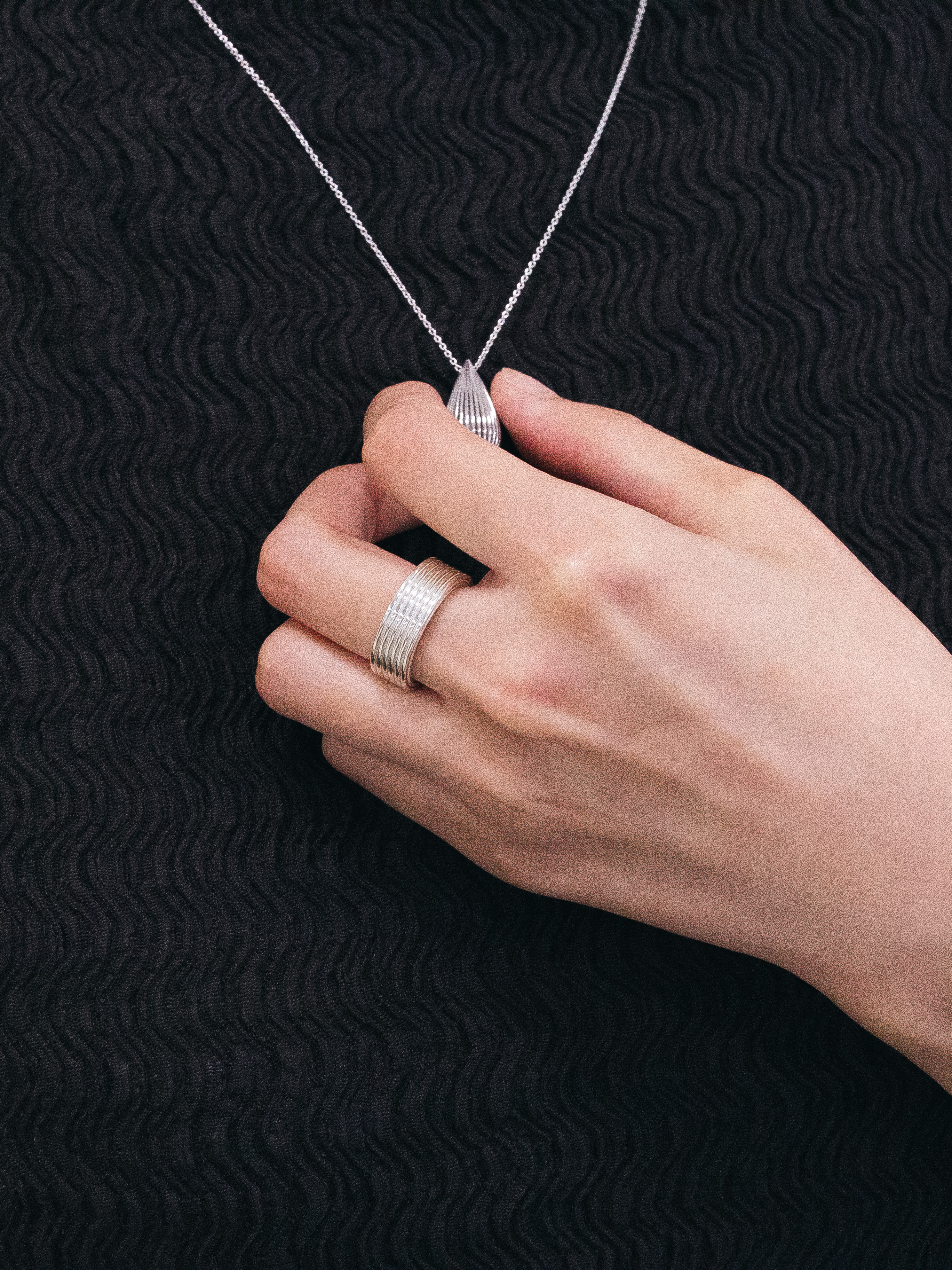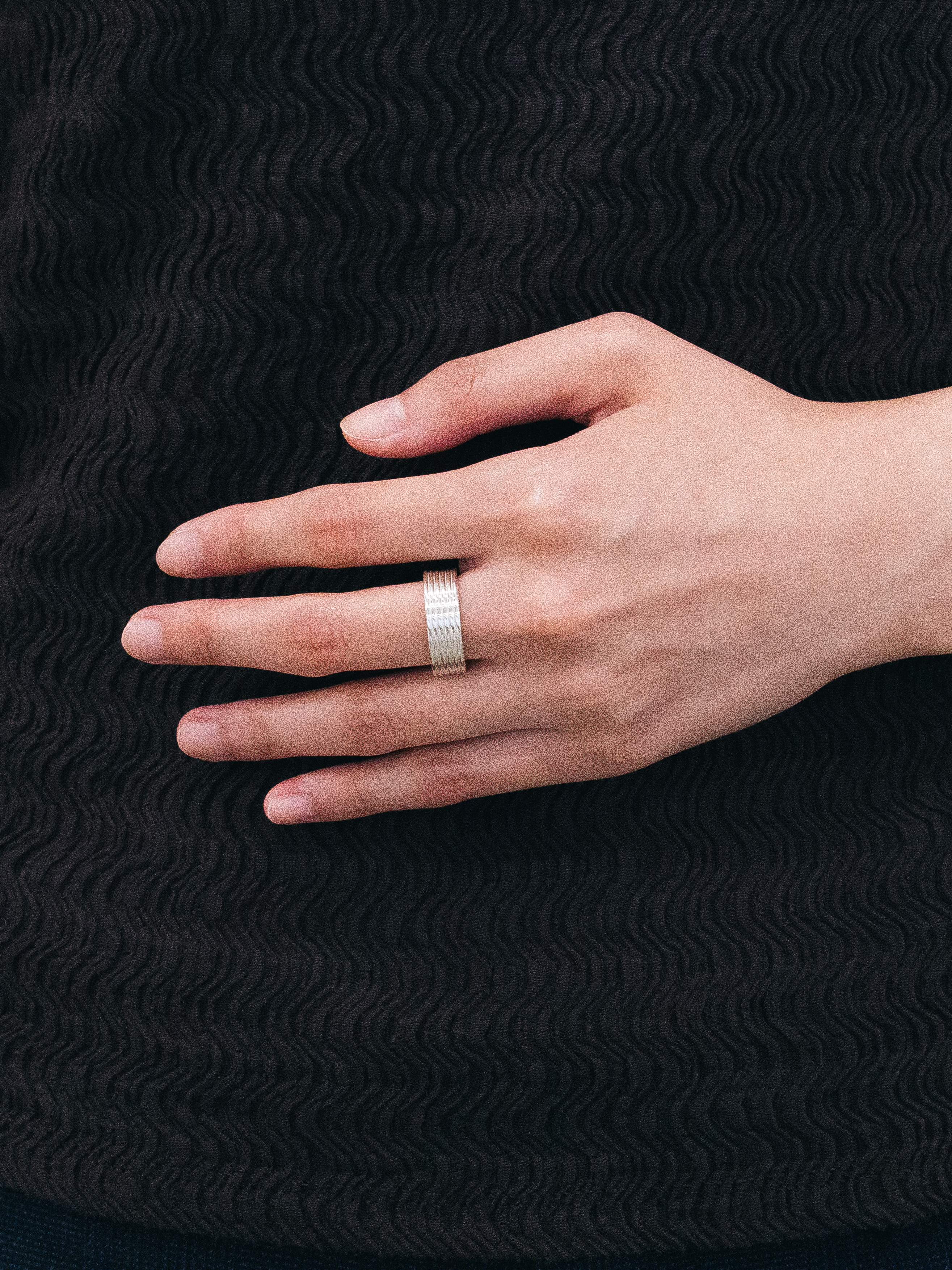 . 도금 없음 : 표면을 도금하지 않은 은 소재 그대로의 high-polishing 마감입니다. 금속은 도금하지 않고 세공한 그대로의 광택이 가장 은은하고 아름답습니다. 다만 화이트 마감하지 않은 925 은 소재의 제품은 상대적으로 변색에 취약하며, 사용자의 관리가 요구될 수 있습니다.