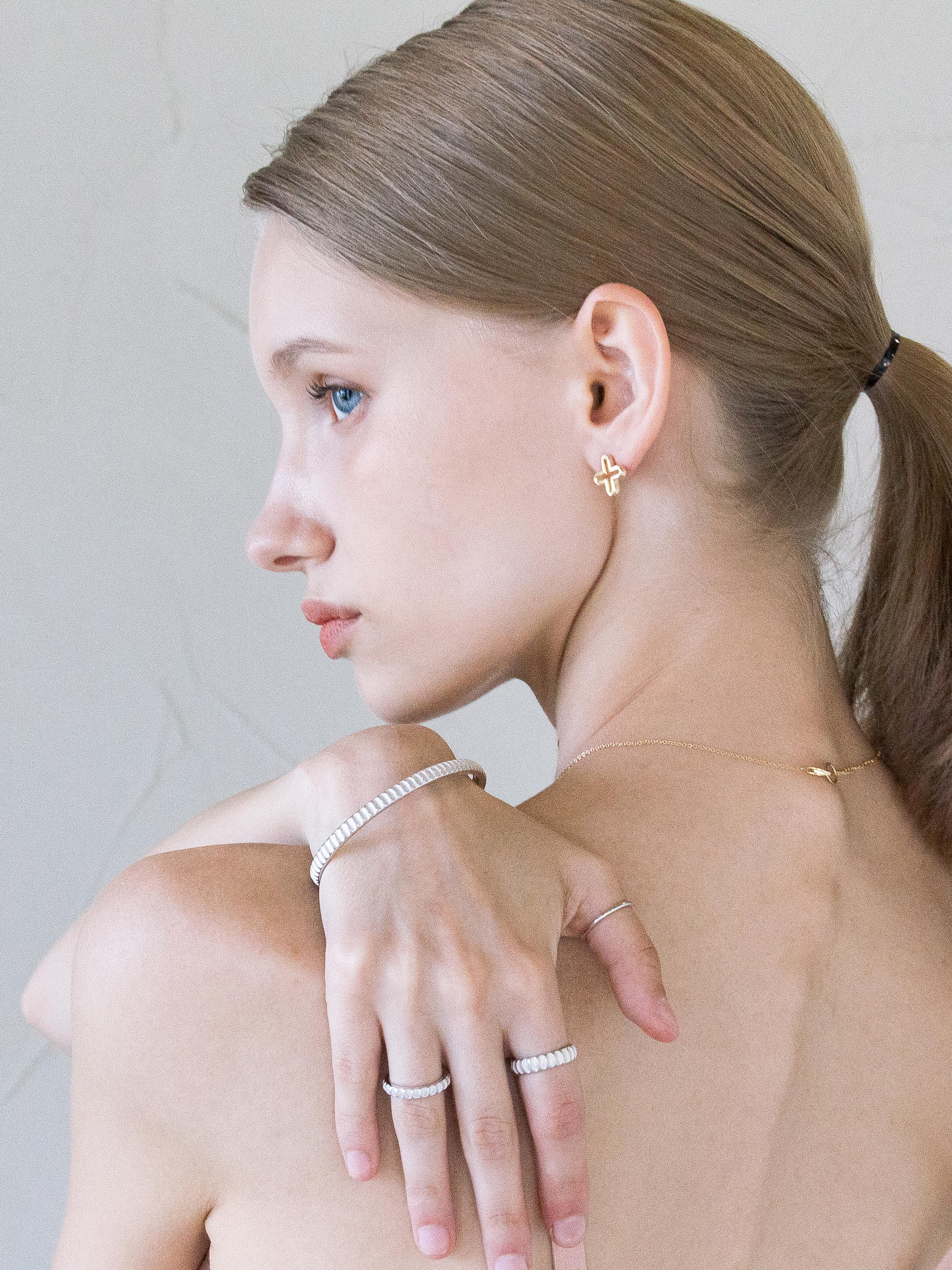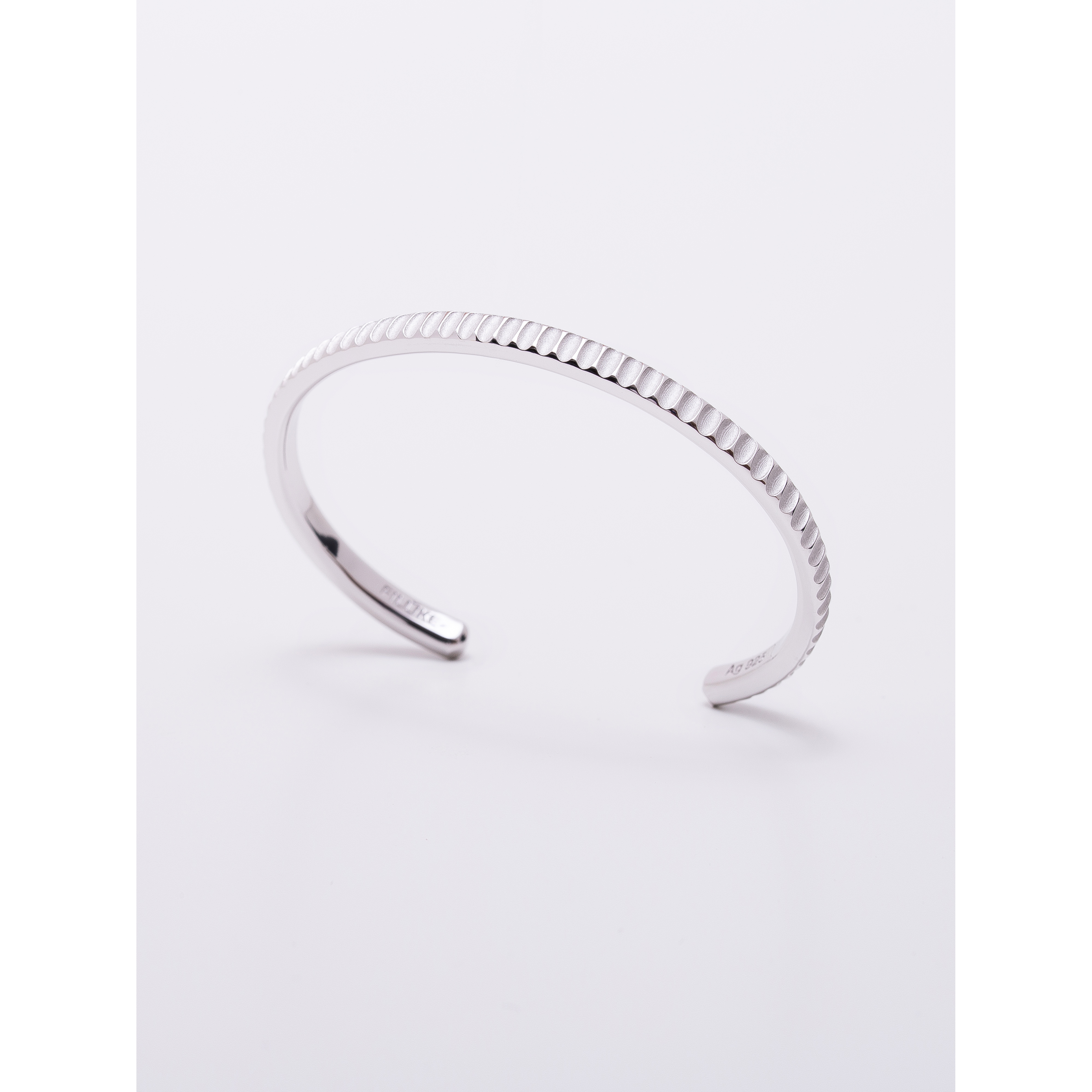 . 도금 없음 : 표면을 도금하지 않은 은 소재 그대로의 high-polishing 마감입니다. 금속은 도금하지 않고 세공한 그대로의 광택이 가장 은은하고 아름답습니다. 다만 화이트 마감하지 않은 925 은 소재의 제품은 상대적으로 변색에 취약하며, 사용자의 관리가 요구될 수 있습니다.